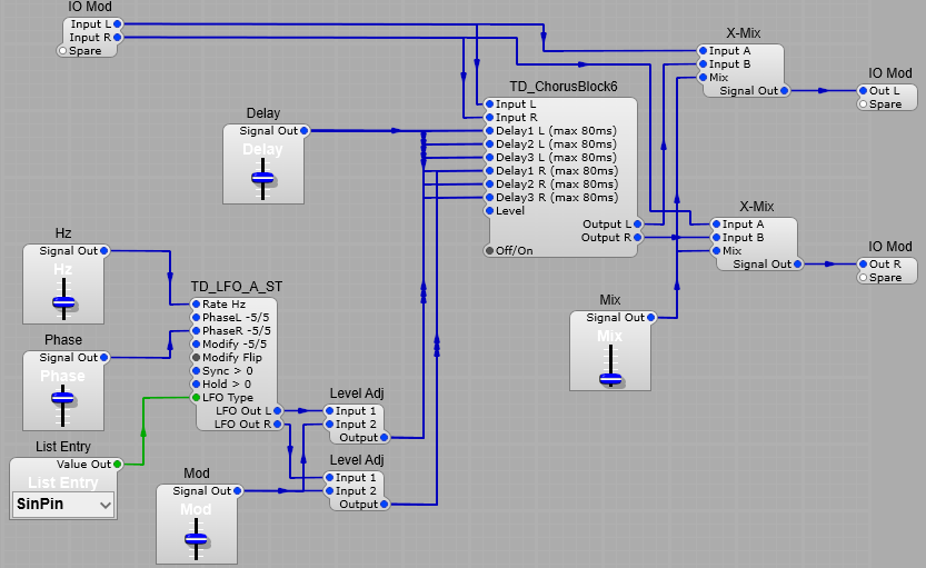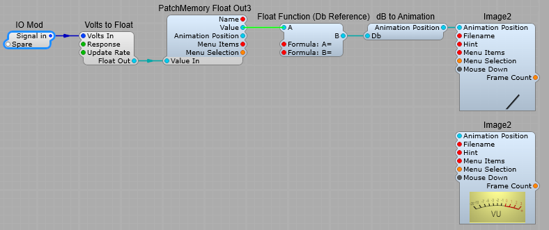 This prefab is a means of taking the values from multiple controls, and combining them into one display. The voltages are converted from DSP volts into GUI text, and combined into a single string for display in a text module, the resulting control panel is shown below. The limiting factor for this application would be how complex you feel the display can be, and still be;
