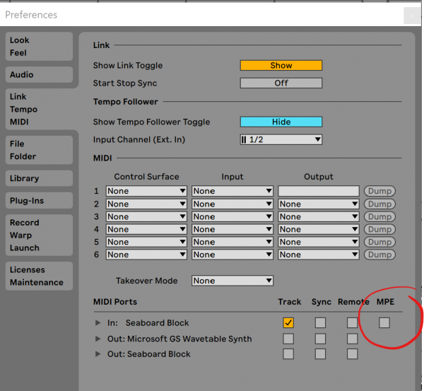 In Ableton insert your VST3 plugin, and ensure that the plugin’s MPE Mode is set to “On”. Open Ableton’s settings and ensure that Ableton’s MIDI controllers MPE tickbox is Off. Yes Off.