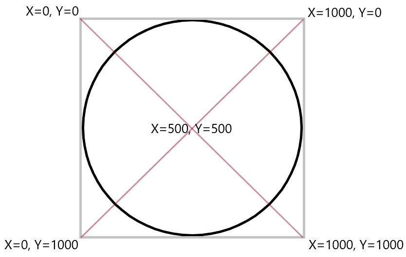 The Back Line X and Y points for both line A and Line B are measured between the top left 0,0, and bottom right of the control 1000, 1000. These values are the same whatever the size of the control, so setting a line to 500, 0 will put A X halfway along the X axis, and the top of the Y axis.