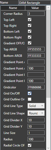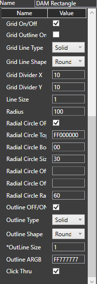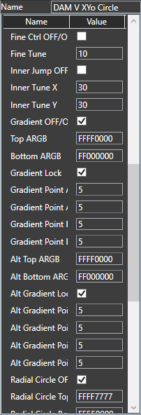 Settings for the DAMV XYo Circle and DAM Rectangle modules.
