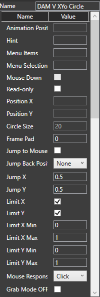 Settings for the DAMV XYo Circle and DAM Rectangle modules.
