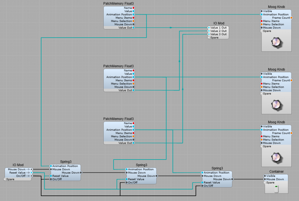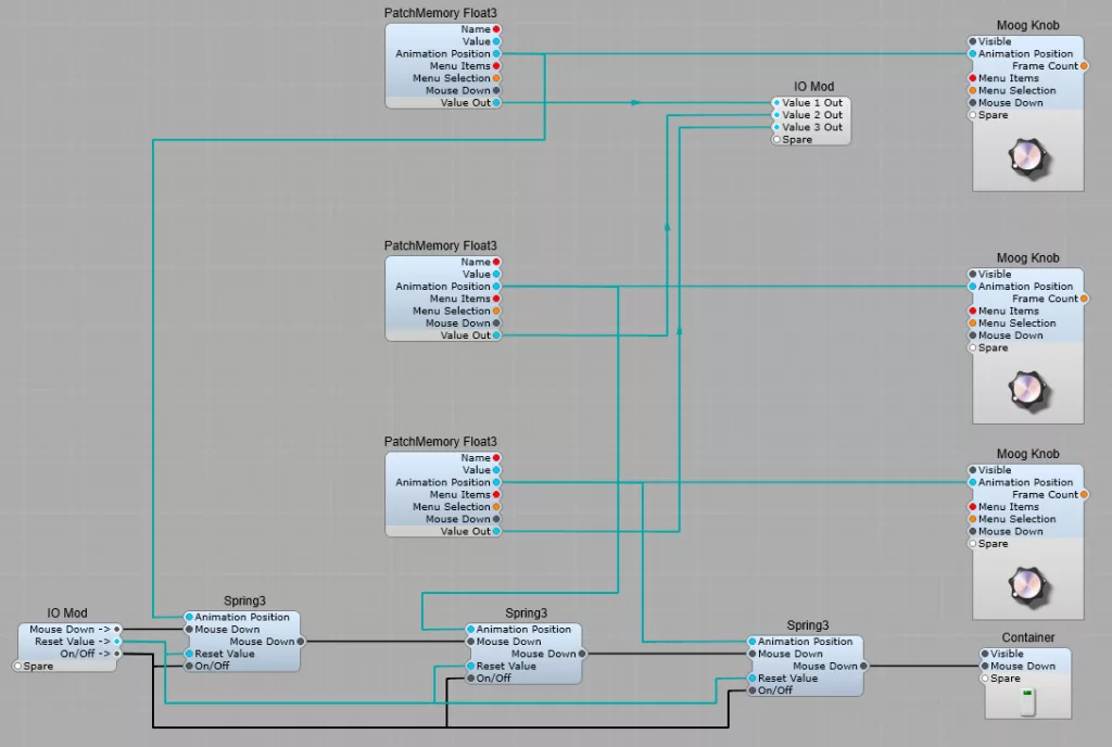 Tip: Give each of the PatchMemory Float3 modules a useful name in the properties, so if you want to adjust the range of the control you know which one you’re adjusting.