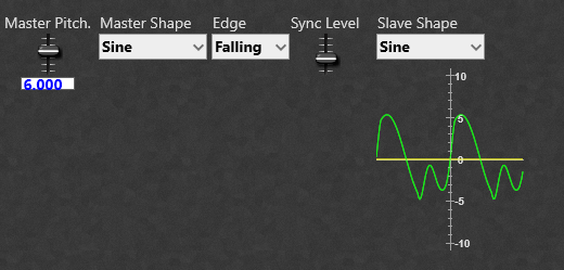 Note: If you are intending to use large levels of Sync, or waveforms (such as ramp) with fast rise/fall times you will introduce aliasing, so it’s good policy to include oversampling in the Master/Slave Sync Oscillator’s container to limit this.