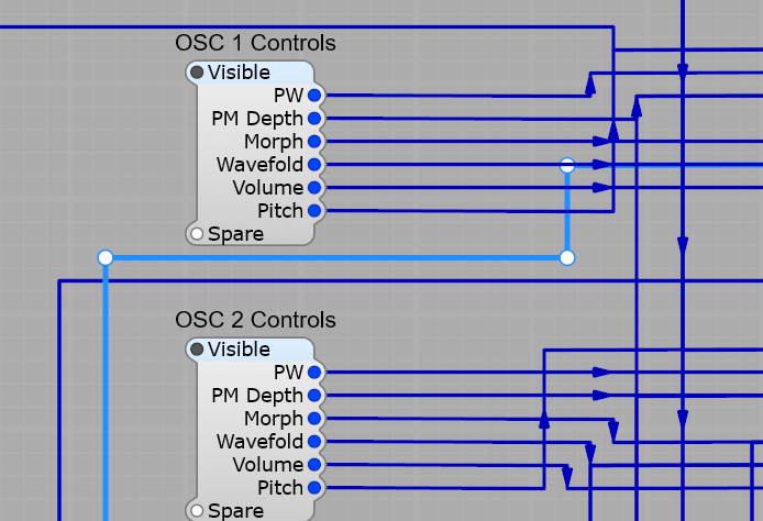 Sub Controls function only while their Container’s Panel is open. i.e. if you close you synth’s panel, those sub controls become inactive. Therefore never rely on GUI modules to process audio signals. The exception is hybrid modules (Patch Memory) which continue to provide patch-selection and automation functions via their audio pins.
